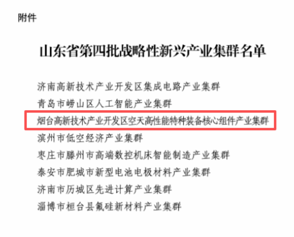 膠東在線消息(通訊員 郭健 實習(xí)編輯 單煜媛)近日,煙臺高新區(qū)空天高性能特種裝備核心組件產(chǎn)業(yè)集群成功獲批2025年省級戰(zhàn)略性新興產(chǎn)業(yè)集群,成為今年全市唯一認(rèn)定的省級集群,標(biāo)志著該集群在空天高端裝備制造領(lǐng)域的核心競爭力與產(chǎn)業(yè)引領(lǐng)性獲省級認(rèn)可,將為煙臺打造山東商業(yè)航天全產(chǎn)業(yè)鏈發(fā)展核心區(qū)注入強勁動力,助力區(qū)域戰(zhàn)略性新興產(chǎn)業(yè)實現(xiàn)高質(zhì)量躍升。