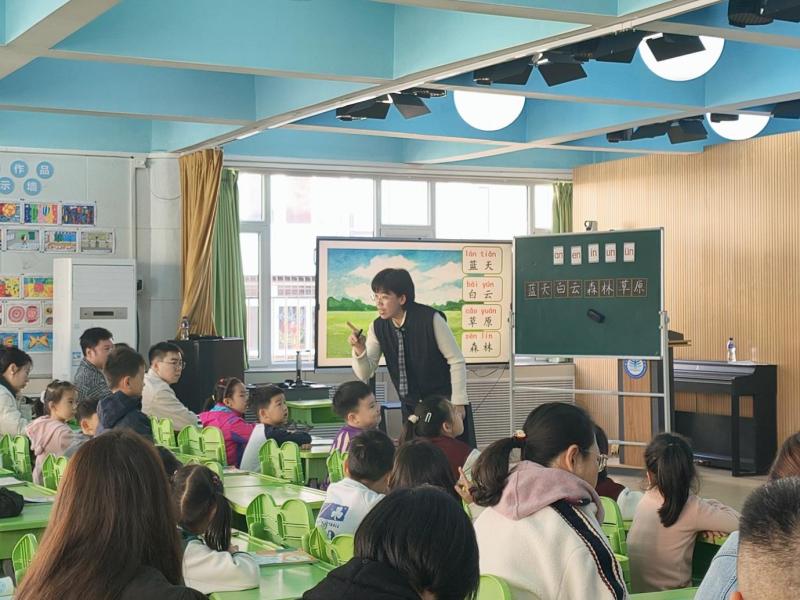 語(yǔ)文課堂上,教師們以趣味拼音為切入點(diǎn),通過(guò)“卡片認(rèn)讀”“一字開(kāi)花”等互動(dòng)環(huán)節(jié),以孩子們喜聞樂(lè)見(jiàn)的形式復(fù)習(xí)拼音知識(shí);以朗讀兒歌、創(chuàng)編兒歌的形式提升學(xué)生的表達(dá)能力。孩子們始終保持高昂的學(xué)習(xí)熱情,高舉小手、積極參與,課堂儼然成為充滿(mǎn)活力的語(yǔ)文學(xué)習(xí)樂(lè)園。